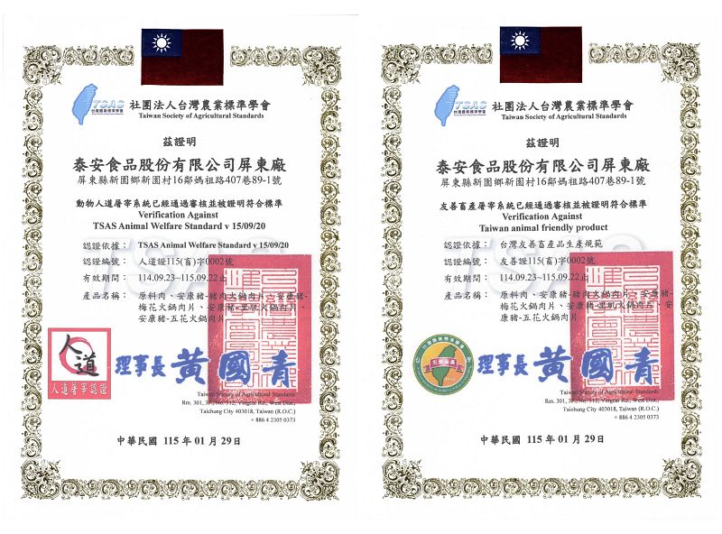 屠宰場通過114年人道屠宰驗證 2026年1月30日/在: 最新消息 /通過: eo00381泰安食品屏東廠屠宰場通過114年度動物人道屠宰及友善畜牧屠宰系統驗證。 https://www.taian-fd.com.tw/wp-content/uploads/2026/01/202311222358.jpg 402 502 eo00381 /wp-content/uploads/2018/12/vfvfbbfbfbfbfbbfb.png eo003812026-01-30 11:40:102026-02-04 10:31:23屠宰場通過114年人道屠宰驗證